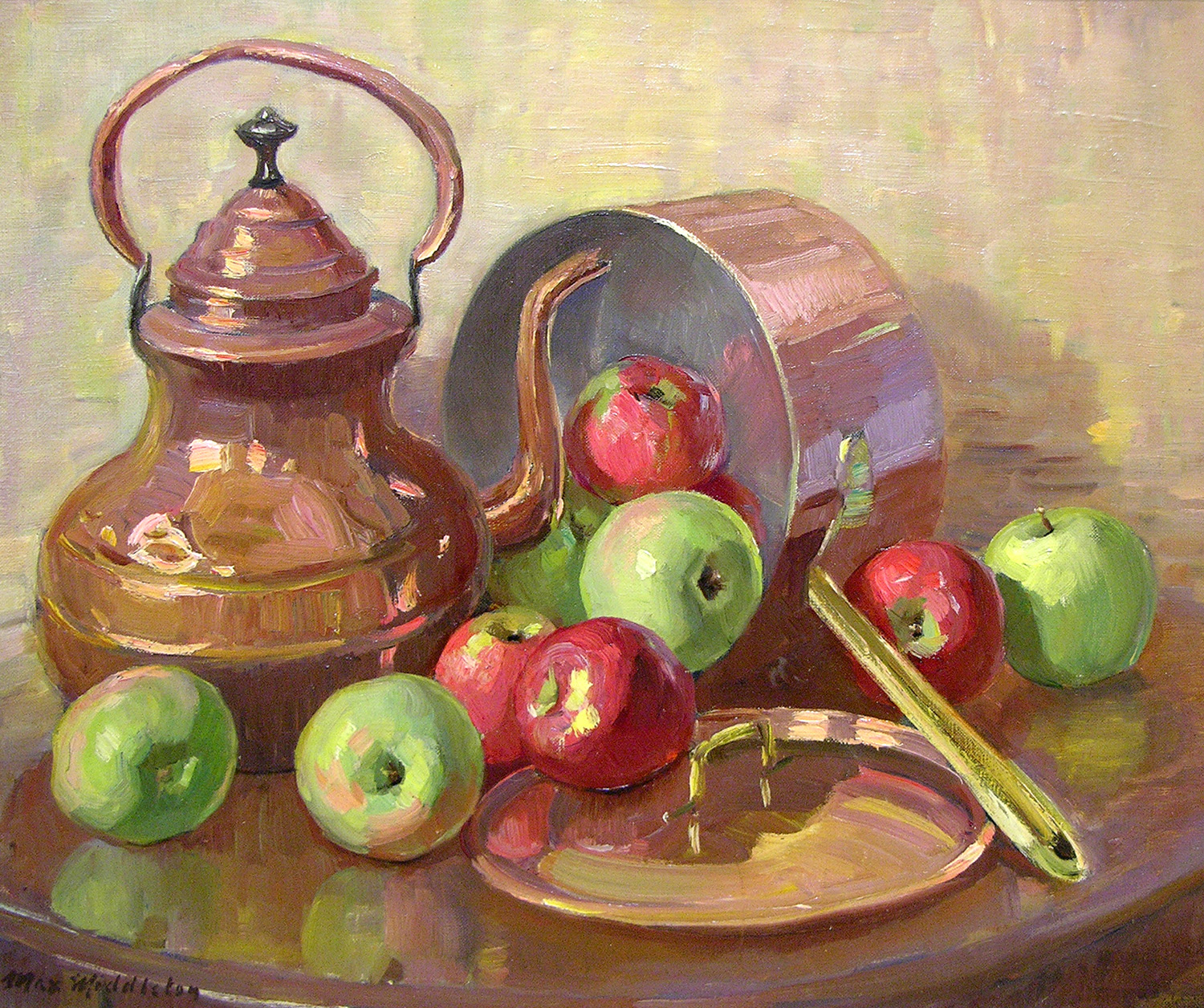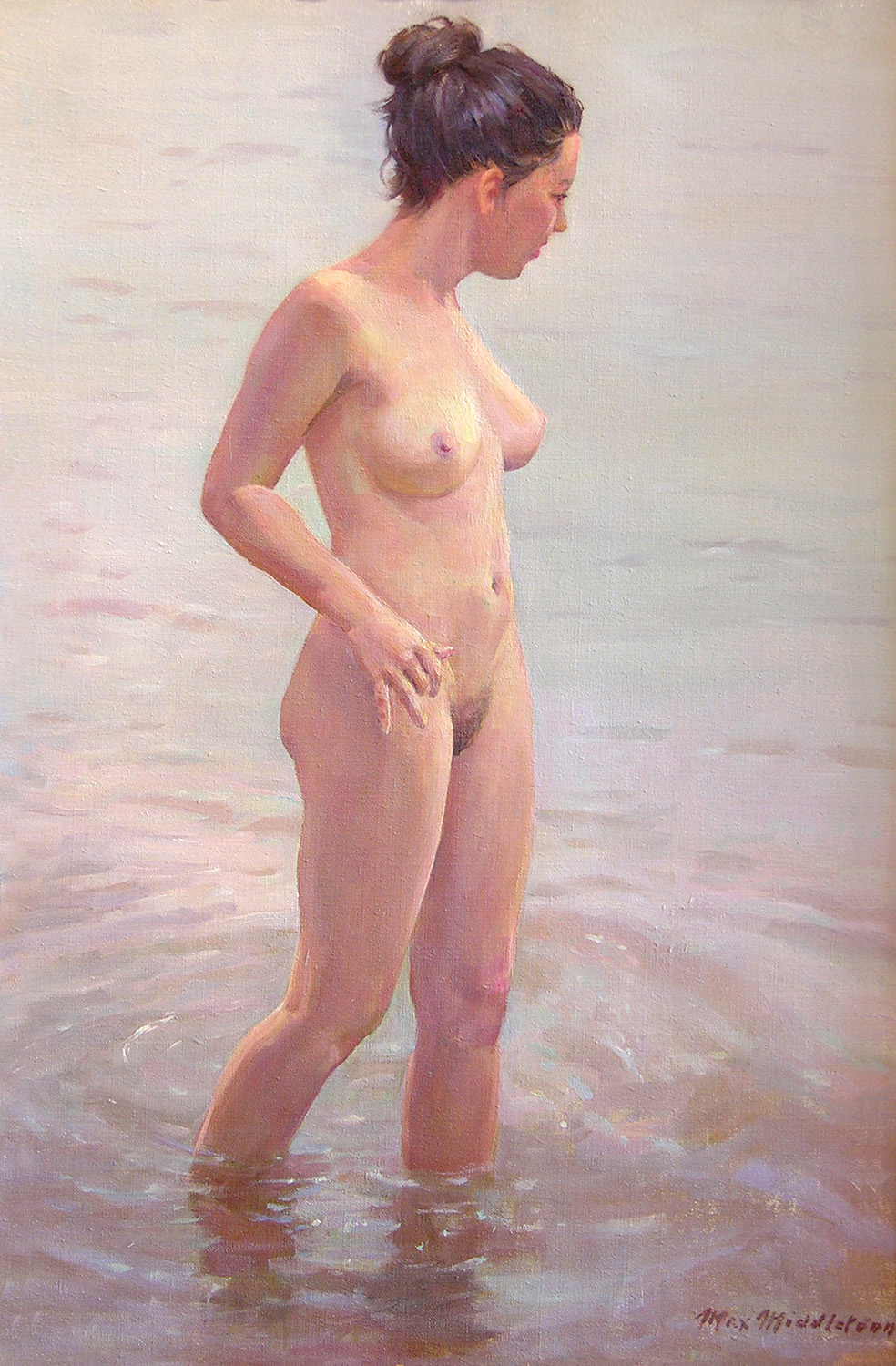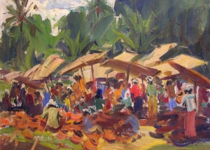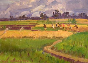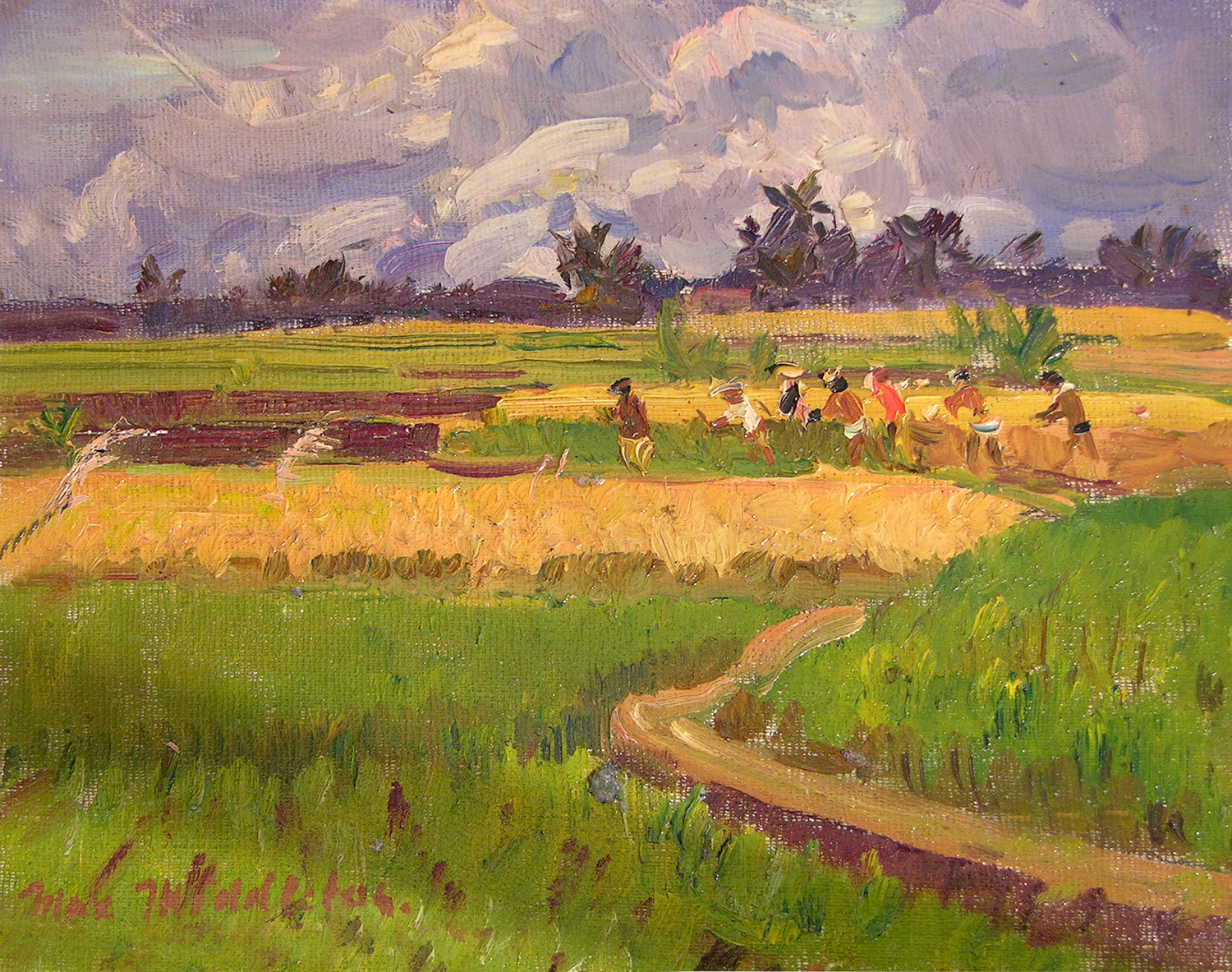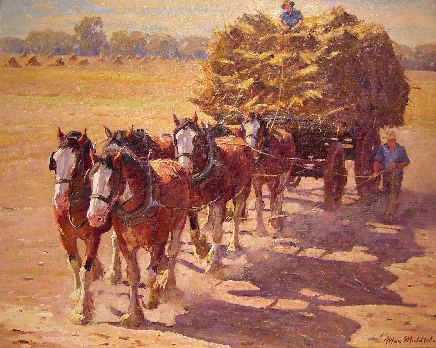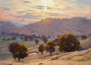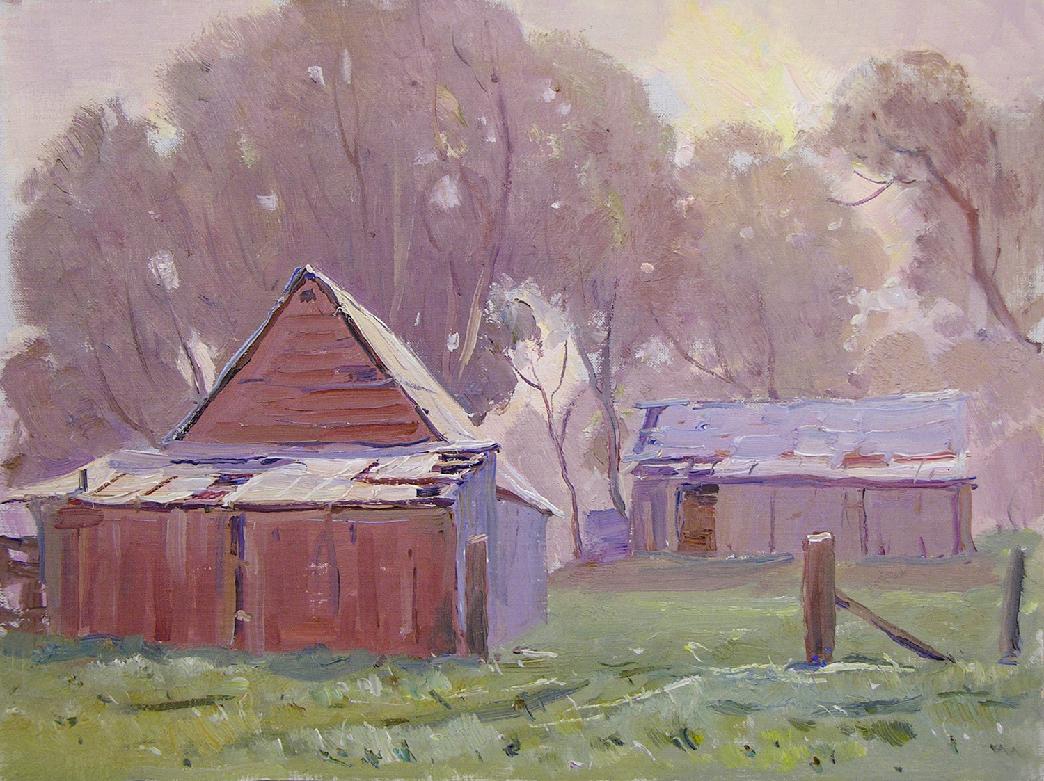 Throughout his career, Max Middleton painted diverse subjects – all of them infused with vitality. Most of Max’s paintings were of the Australian landscape, based upon small oil sketches he painted on location. As an en plein air painter, he faithfully rendered what he saw in lush and juicy oil paint. His profoundly keen observations resulted from the excitement he experienced watching the transforming effect of light on the world. It is light that informs all his work. Often small sketches were painted under extremely difficult circumstances. The harsh realities of 5am starts on frosty autumn mornings in central Victoria, hands stiff and numb with the cold, and eyes strained from hours of staring into the rising sun, never held Max back from doing what he loved most: painting outdoors.