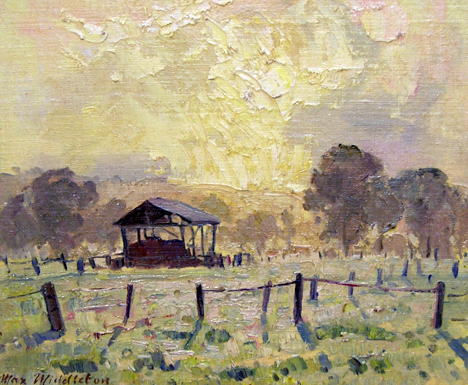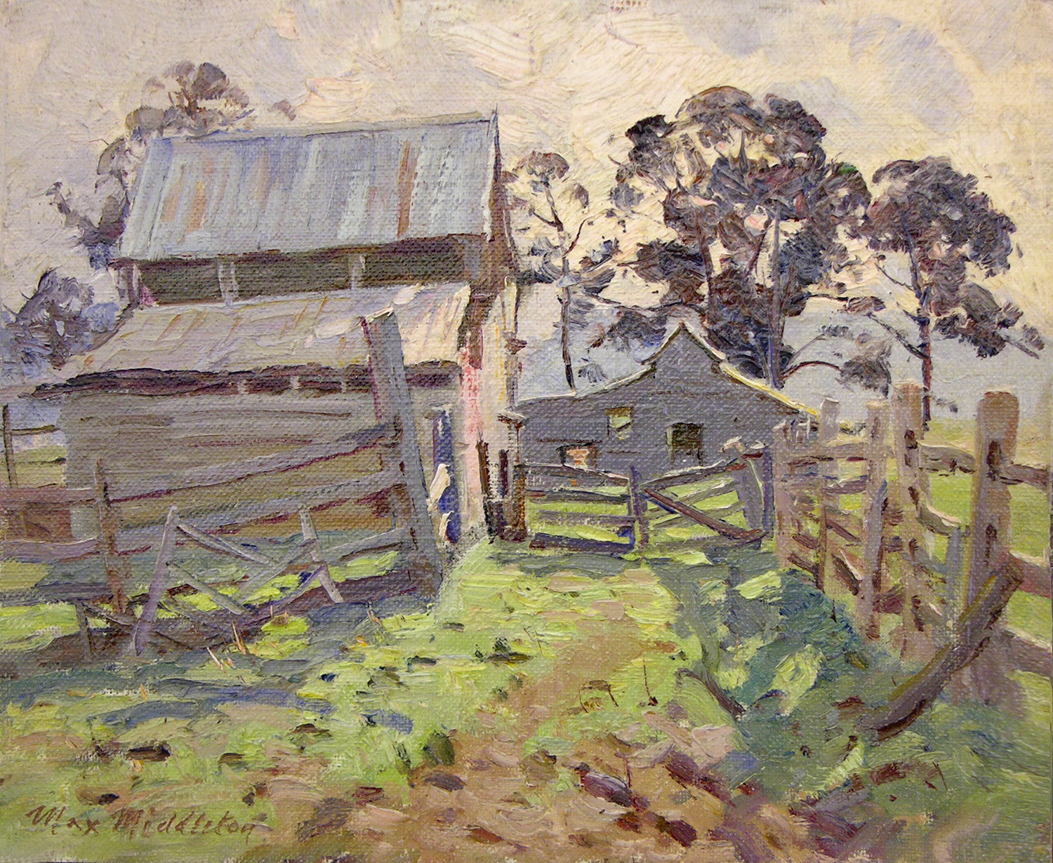 Max consistently referred back to nature for inspiration. His love of rural life dates from childhood excursions to the country, and time spent on farms. He admired traditional farm life, and believed the old farm sheds and barns of country Victoria worthy of preservation.