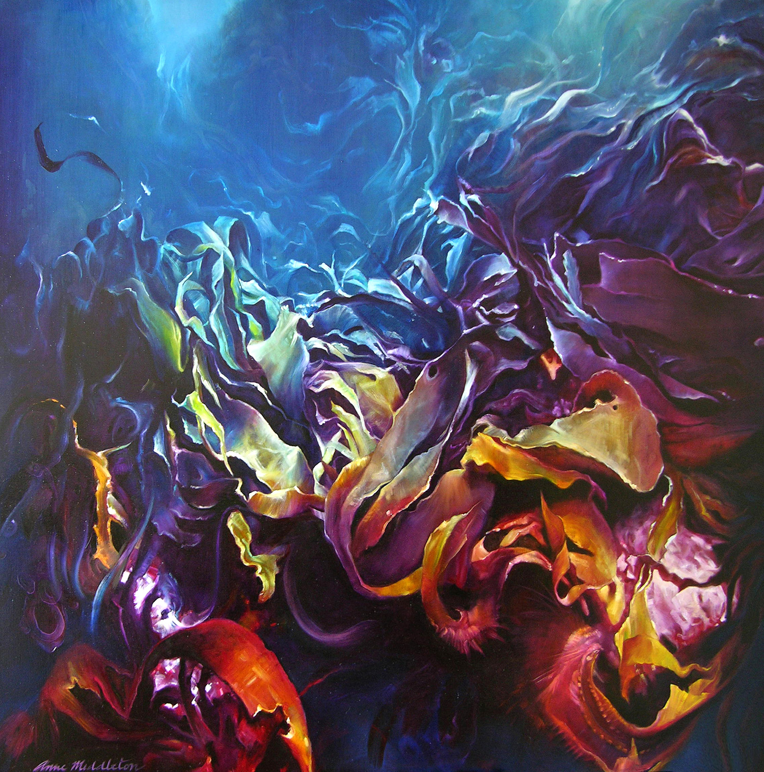 Anne Middleton’s fascination with painting natural form, found expression in Oceania australis – a series inspired by the unique oceans of the southern coast of Australia. A selection of paintings from Oceania australis was exhibited in Melbourne in 2006, and then Deputy State Premier and Minister for the Environment, Water and Climate Change, Hon. John Thwaites officially opened the exhibition.